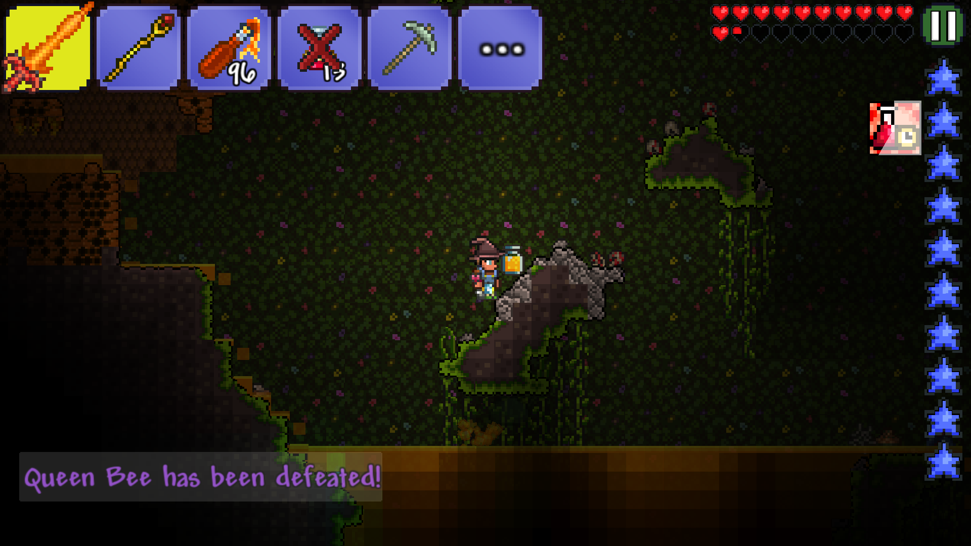 3 points 27 days ago. I also put down a campfire plus star heart lantern though i m lacking a honey pool on the surface. Need help master mode queen bee. Loaded up on potions.